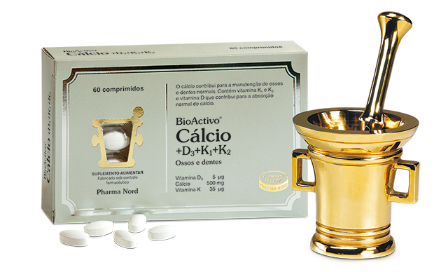 Os comprimidos de BioActivo Cálcio+D3+K1+K2 contêm nutrientes importantes para a saúde óssea. Cada comprimido fornece 1.247 mg de carbonato de cálcio, a forma que fornece a maior quantidade de cálcio elementar. Esta combinação garante que os nutrientes são processados no estômago e que os iões de cálcio são absorvidos no intestino, com a ajuda, entre outros, da vitamina D3. A vitamina K é absorvida no intestino delgado, onde contribui para a manutenção de um tecido ósseo saudável.